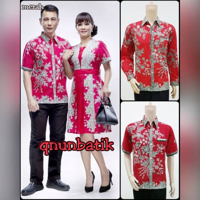 Agen Pakaian W di Kota Bontang Qnunbatik Sarimbit/couple Batik Dress/terusan Kd Melati Dasar Warna Merah dari Tidak Ada Merek Kota Surakarta (solo)