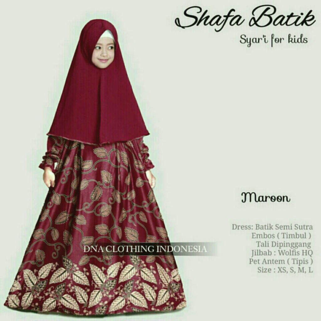 Name: Shifa Batik Kids02 Maroon Syari |400gr Gamis Batik Anak Semisutera Syari Original Realpict Shafa Dna