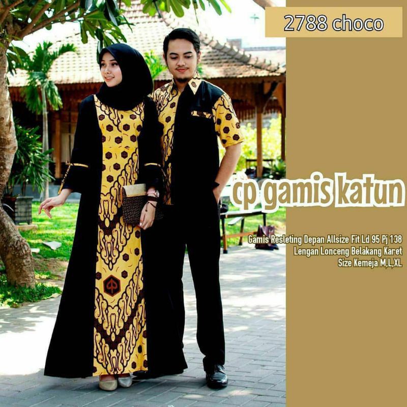 Name: Couple Gamis Katun Motif Batik Hitam Putih Hitam Kuning Lengan Lonceng