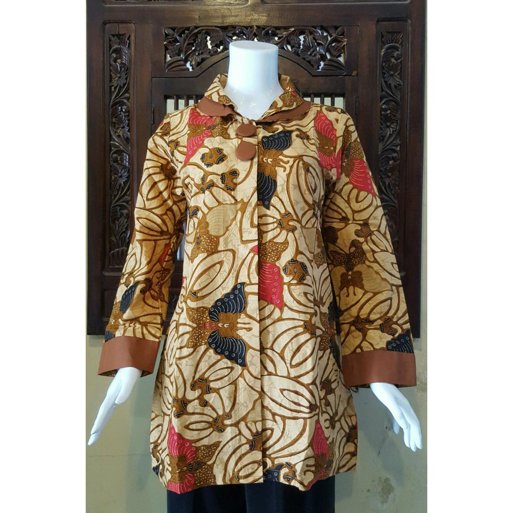 Name: Promo Atasan Batik Wanita Lengan Panjang Motif Kupu Sogan Merah Batik Pekalongan 112 Limited