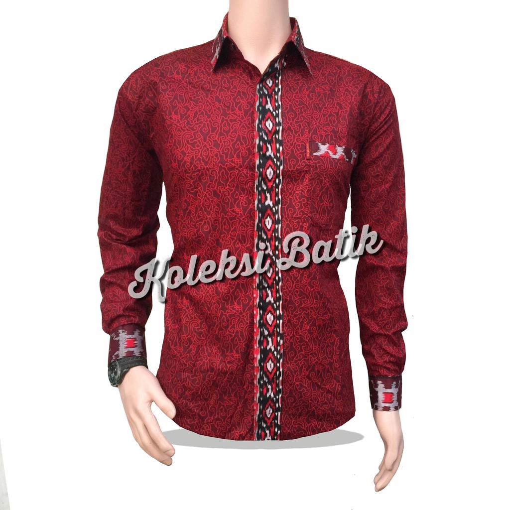 Name: Kemeja Batik Lengan Panjang 021 Megamendung Merah Batik Hrb026 Batik Murah Seno Sogan Padi Manggar